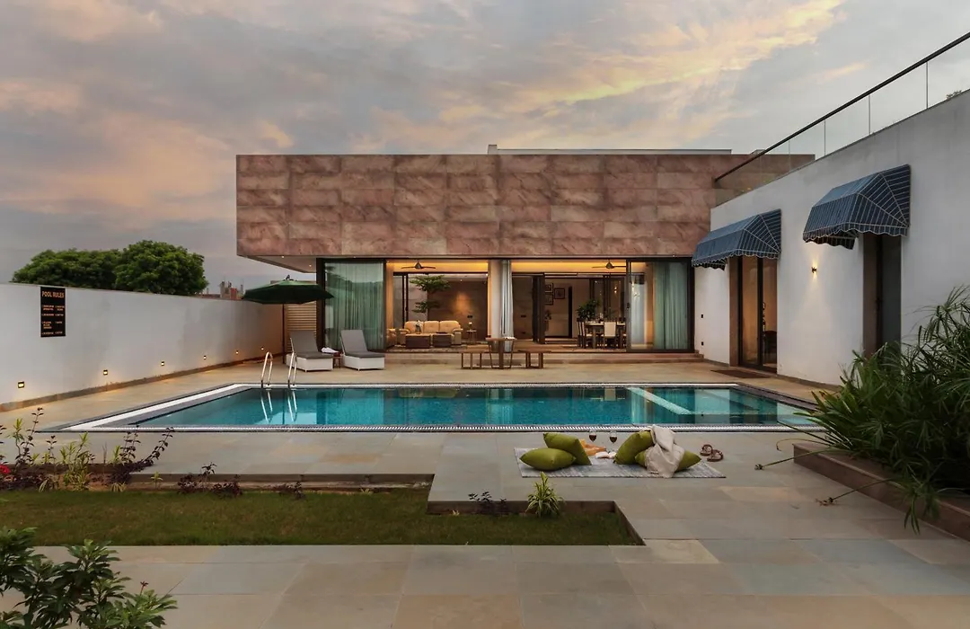 Situated within a 15-minute drive of Medhaja Palace and Fortress, the 4-bedroom SaffronStays Ambika Farms features a sunny patio with views of the mountain.